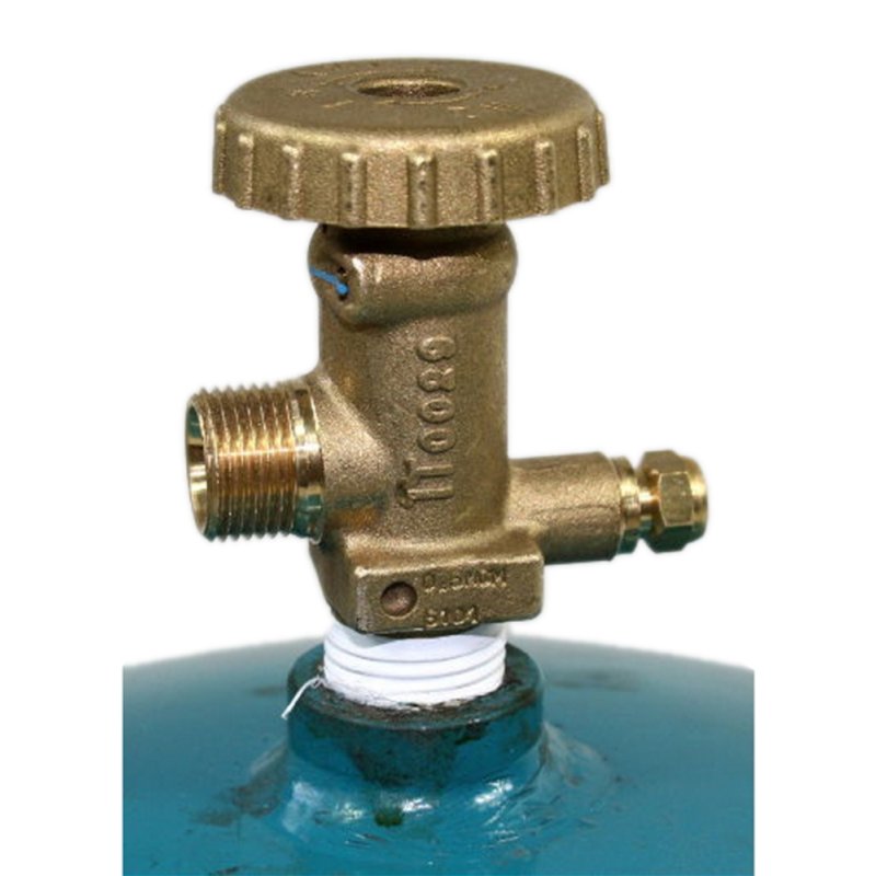 - leere befüllbare Gasflasche 2 kg Propan/Butan mit 90°-Abgang