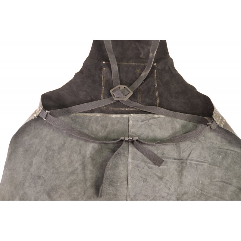 - robuste WELDINGER Premium-Schweißerschürze aus schwarzem Rindnarbenleder
