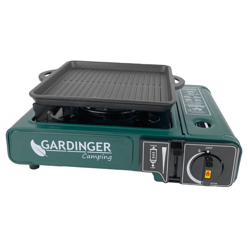 - mobiler, einflammiger Butangaskartuschenkocher GARDINGER Camp Allgas mit Piezozündung und Adapterschlauch