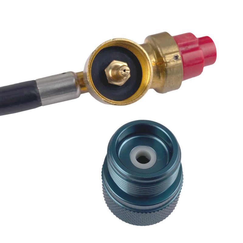 - über Adapterschlauch ist jede 7/16" Gewindekartusche anschließbar, optionalem Adapter auch 5/11 kg Propanflaschen